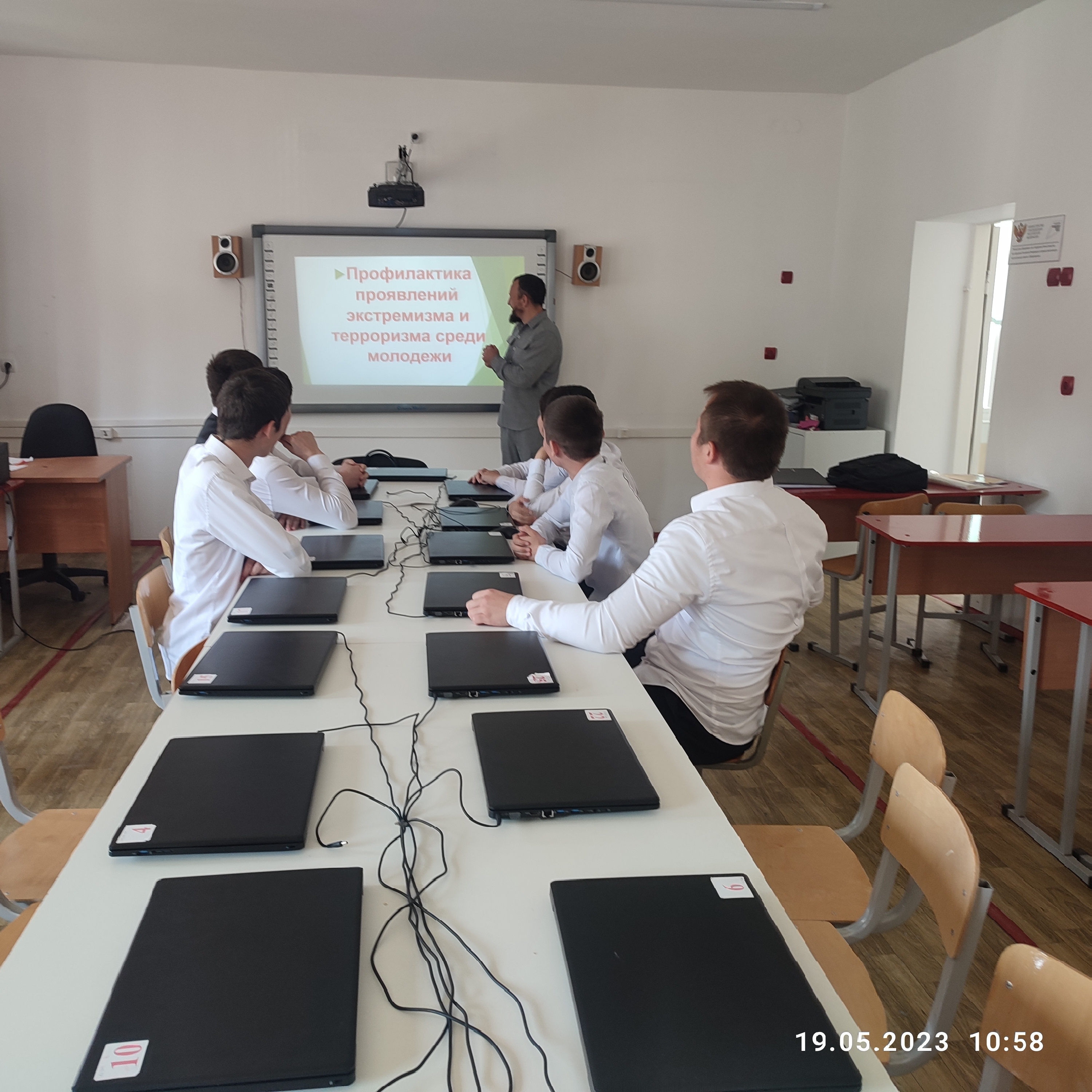 мая 2023 года совместно с сотрудниками УФСБ России по Чеченской Республике среди учеников 5-11 классов МБОУ СОШ №2 c.Сержень-Юрт проведено профилактическое мероприятие на тему «Профилактика проявлений экстремизма и терроризма среди молодежи»