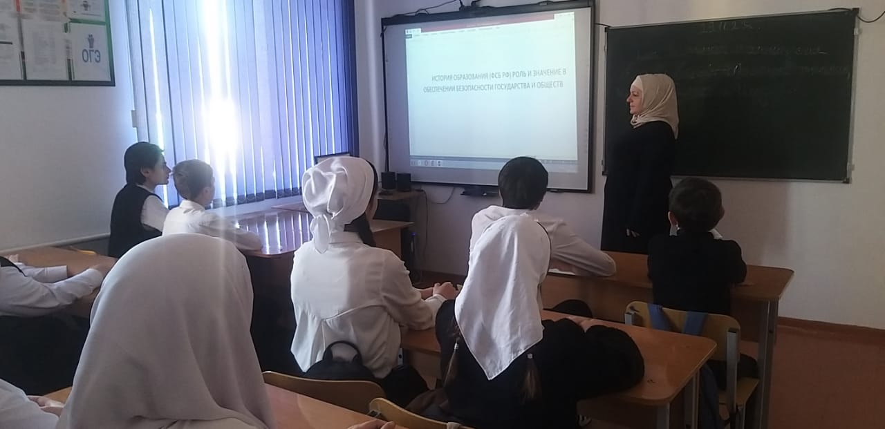 Отделом в Шалинском районе УФСБ России по Чеченской Республике совместно с МУ «Отдел образования Шалинского муниципального района Чеченской Республики» проведено профилактическое мероприятие в МБОУ "СОШ2 с.Сержень-Юрт"на тему: «История образования спецслужб (ФСБ РФ), роль и значение в обеспечении безопасности государства и общества.».