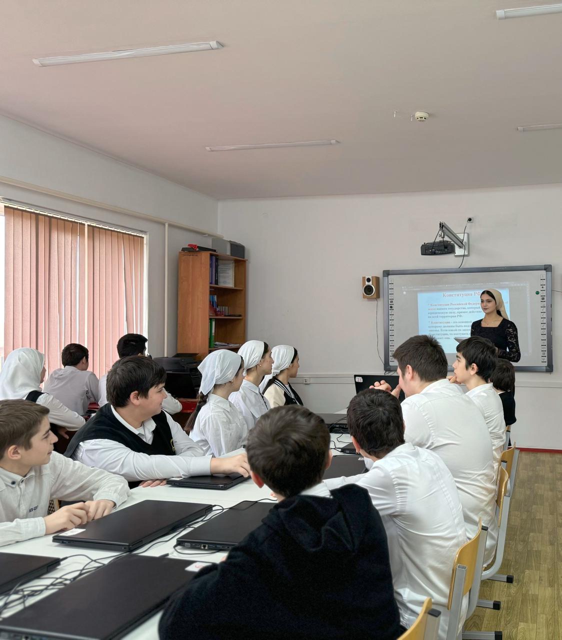 Отделом в Шалинском районе УФСБ России по Чеченской Республике совместно с МУ «Отдел образования Шалинского муниципального района Чеченской Республики» проведено профилактическое мероприятие в «МБОУ СОШ 2с.Сержень-Юрт» на тему: «Важность поддержки курса Президента РФ, а также участия в политической жизни Российской Федерации».