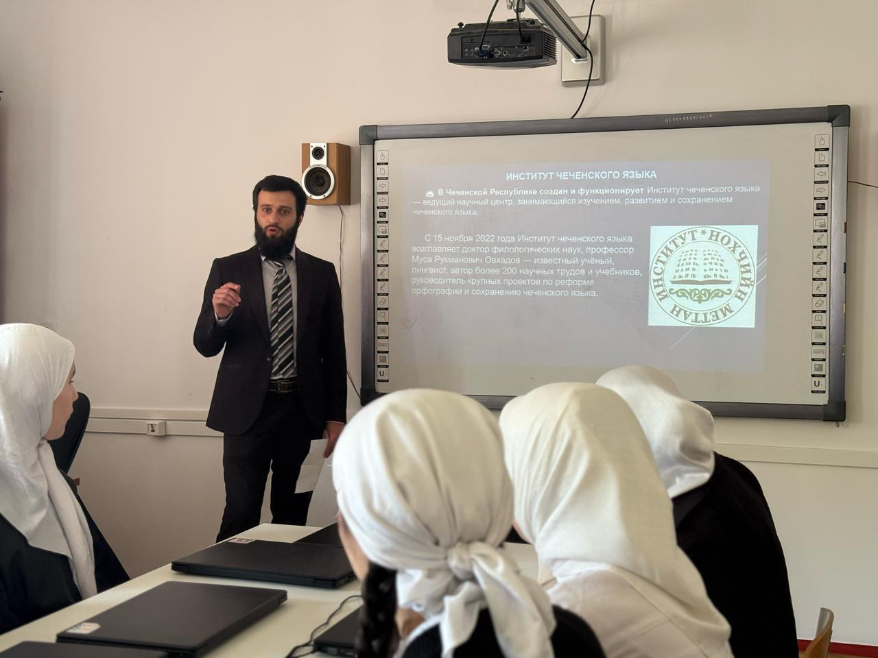 «Право на пользование родным языком», приуроченный ко Дню чеченского языка, который отмечается 25 апреля. Цель урока заключалась в формировании правовой культуры учащихся, развитии уважительного отношения к языковому и культурному разнообразию, а также повышении осознания важности сохранения и развития родного языка в современном обществе.